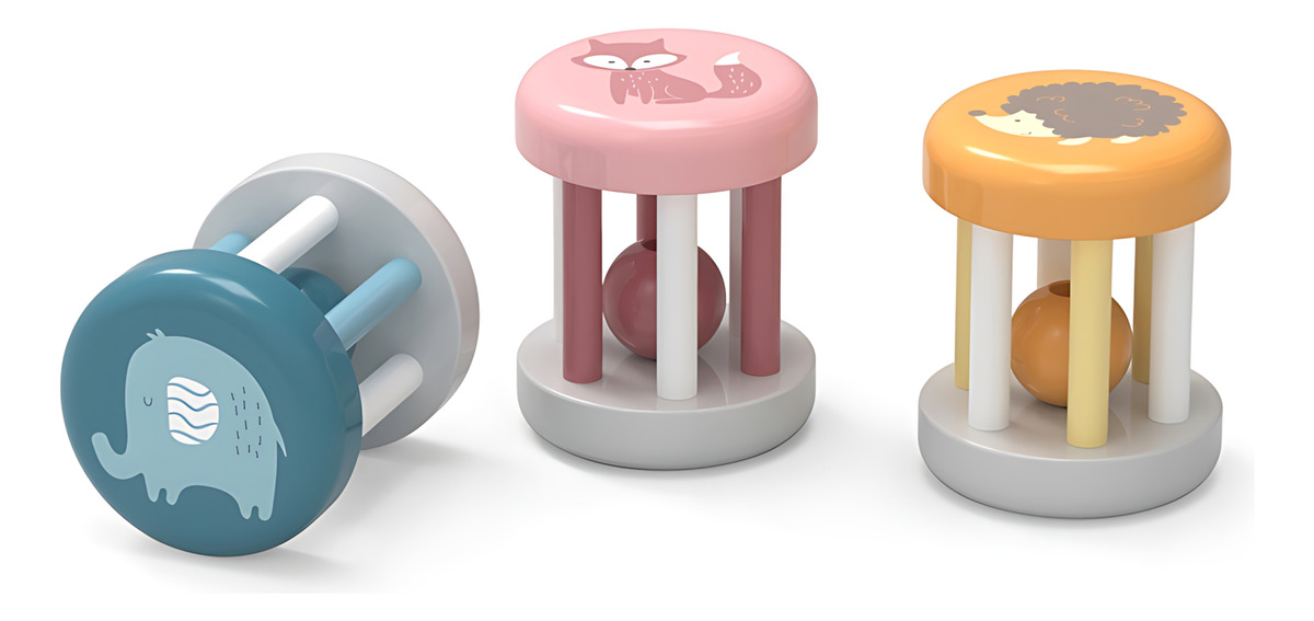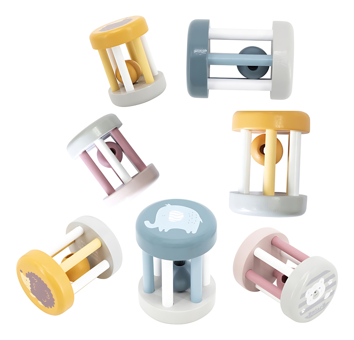 Este sonajero no solo es visualmente atractivo con sus delicados tonos y adorables animales pintados, sino que también está fabricado con madera y pinturas completamente seguras para bebés. Su sonido suave estimula el oído sin irritarlo, mientras que su diseño ergonómico permite que el bebé lo agarre, sacuda y haga rodar fácilmente, fomentando la coordinación ojo-mano y las habilidades motoras.