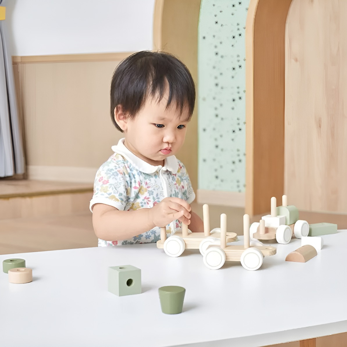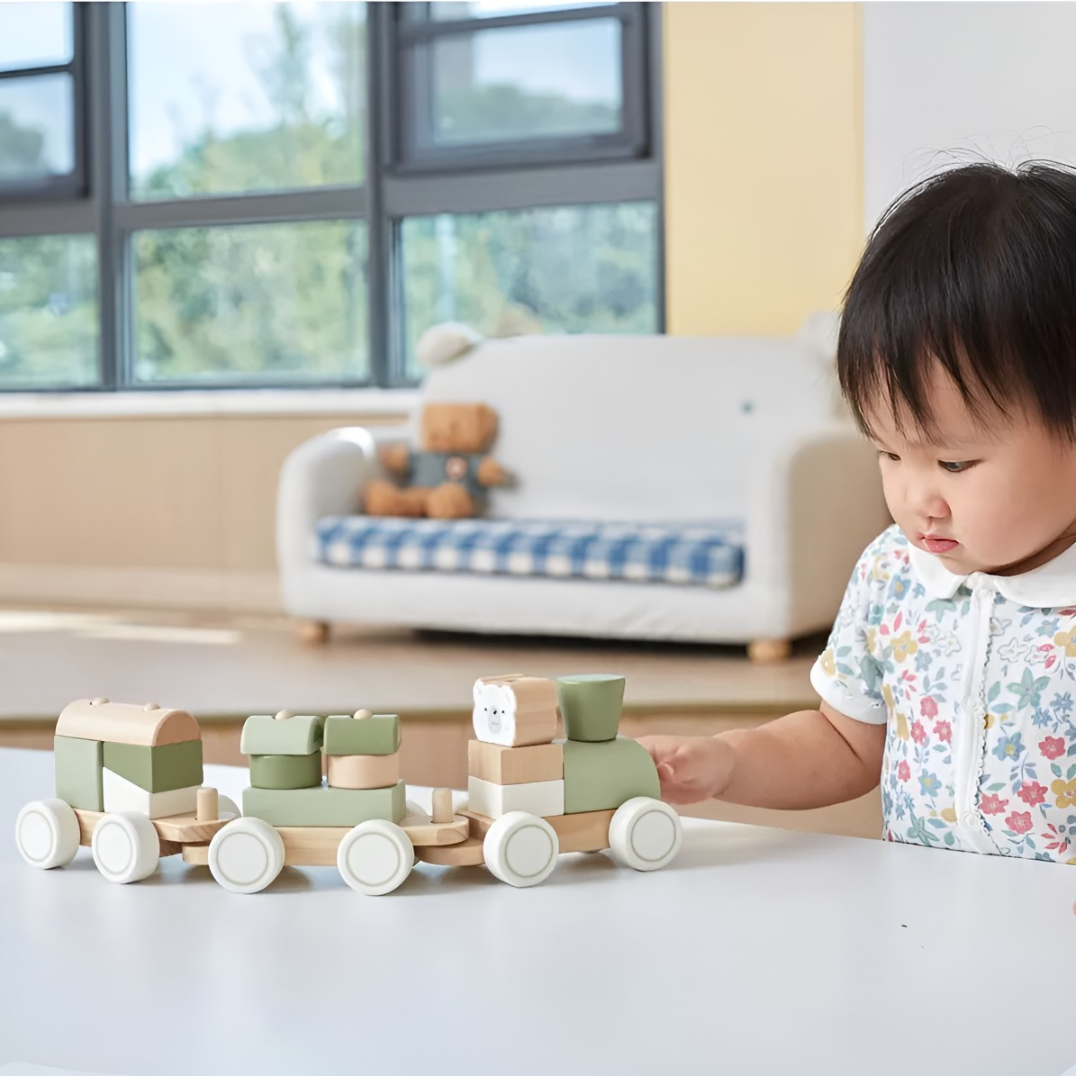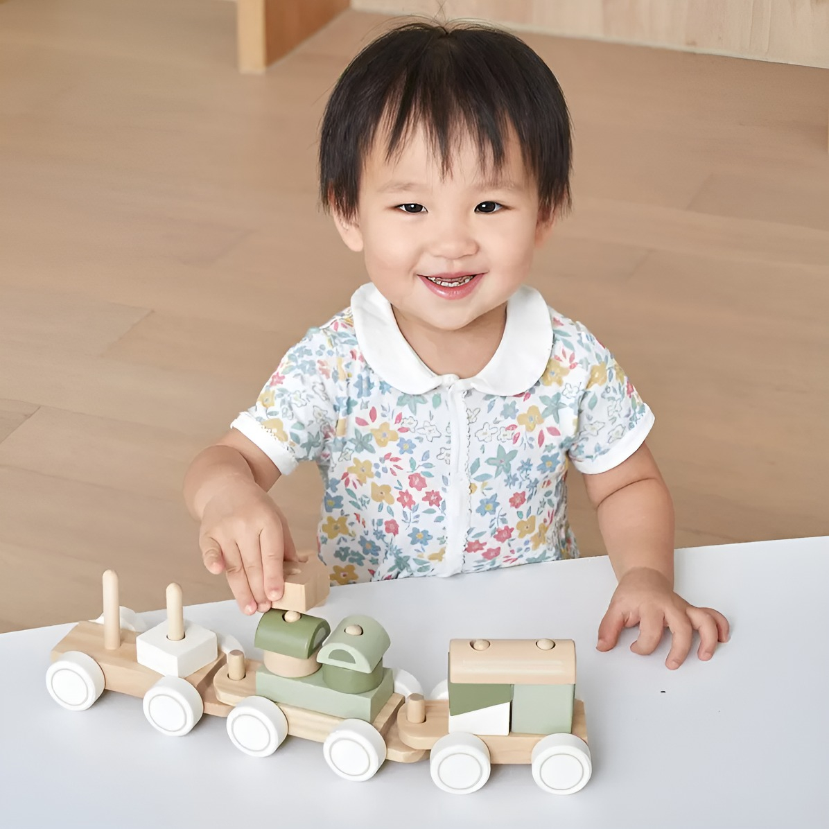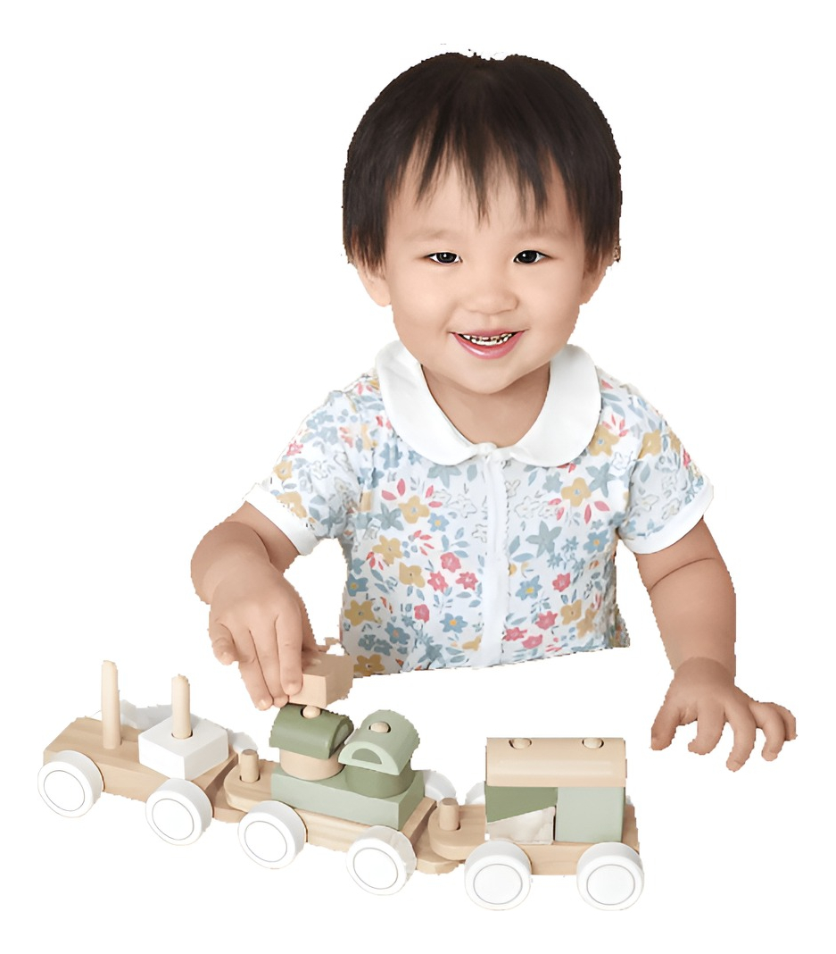 Tren Juguete Didactico Madera Con Bloques Apilables