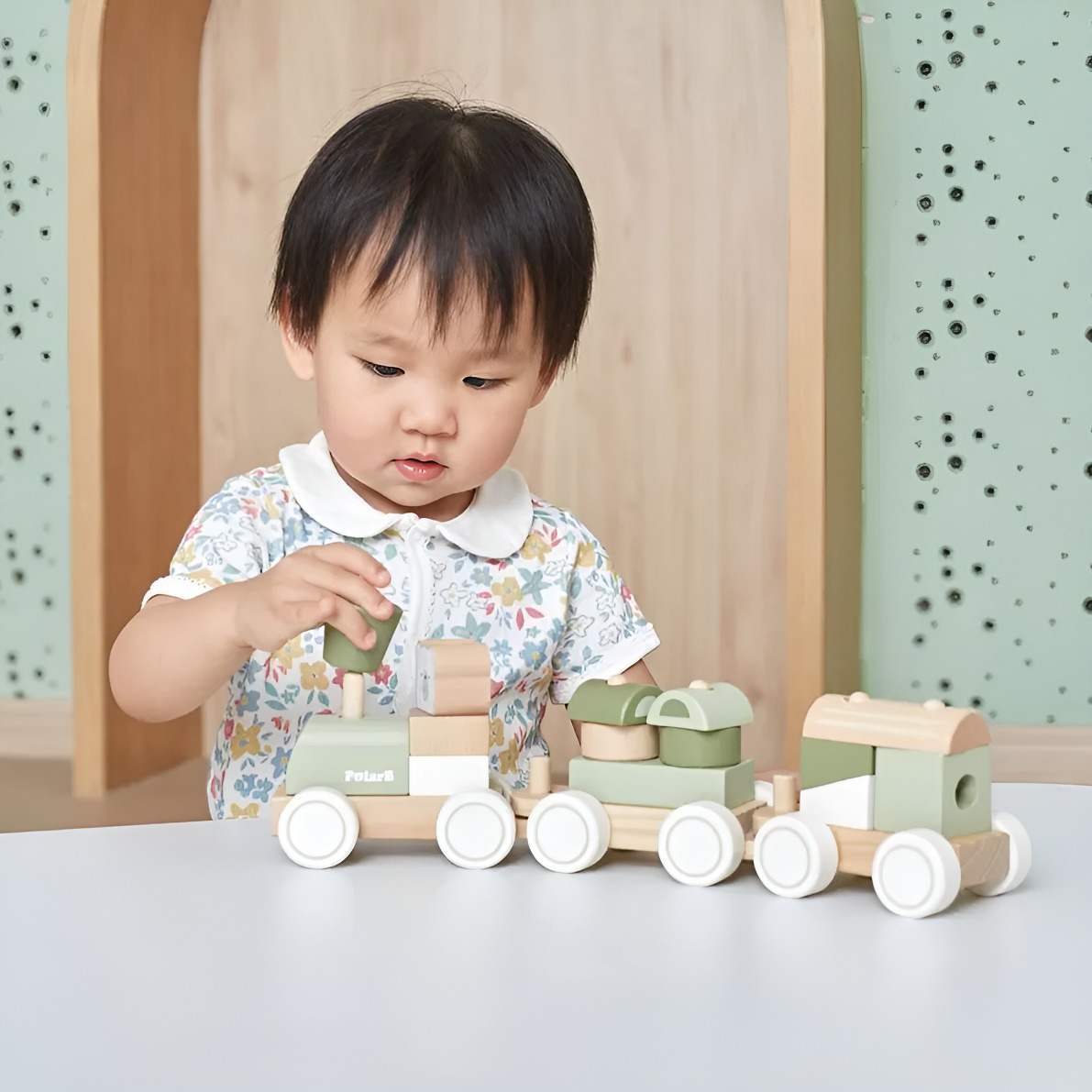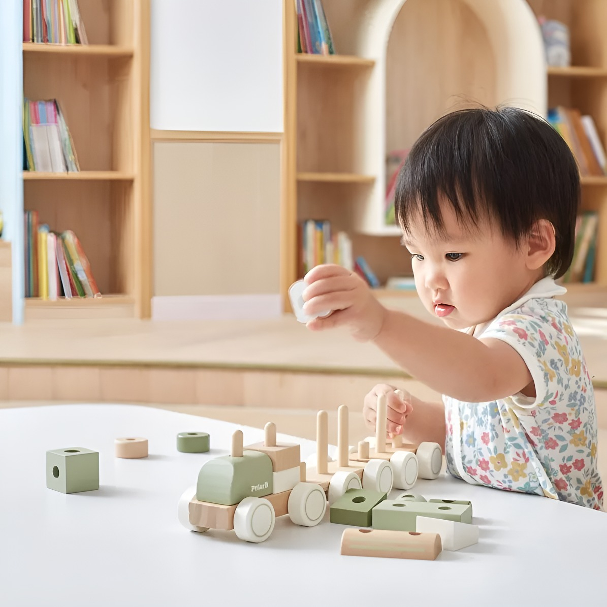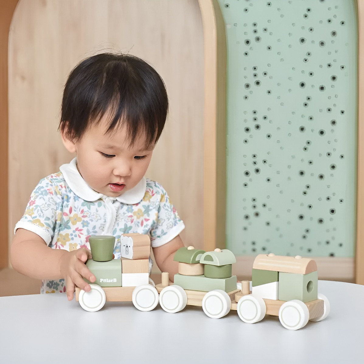 Tren Juguete Didactico Madera Con Bloques Apilables