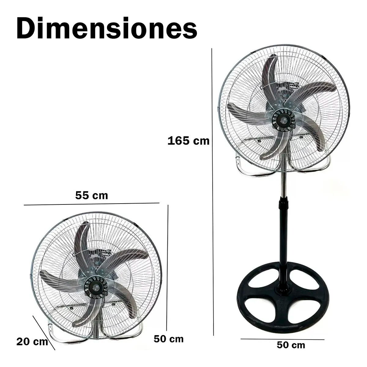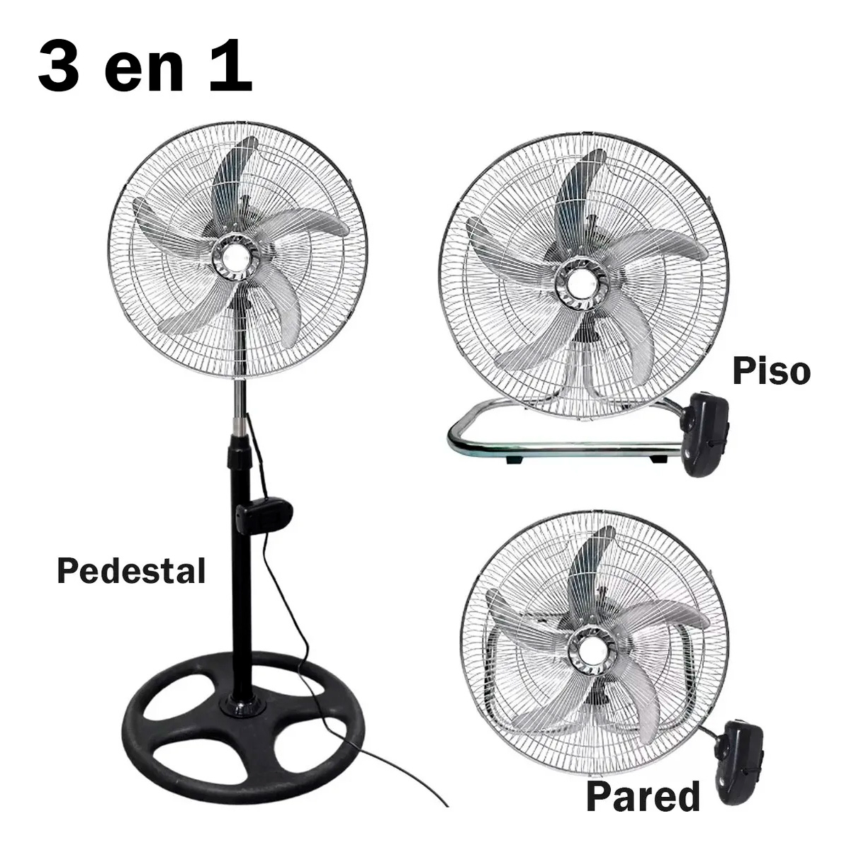 Ventilador 3 en 1 Pie/Mesa/Pared 50W • 3 Velocidades • Aspas Metálicas